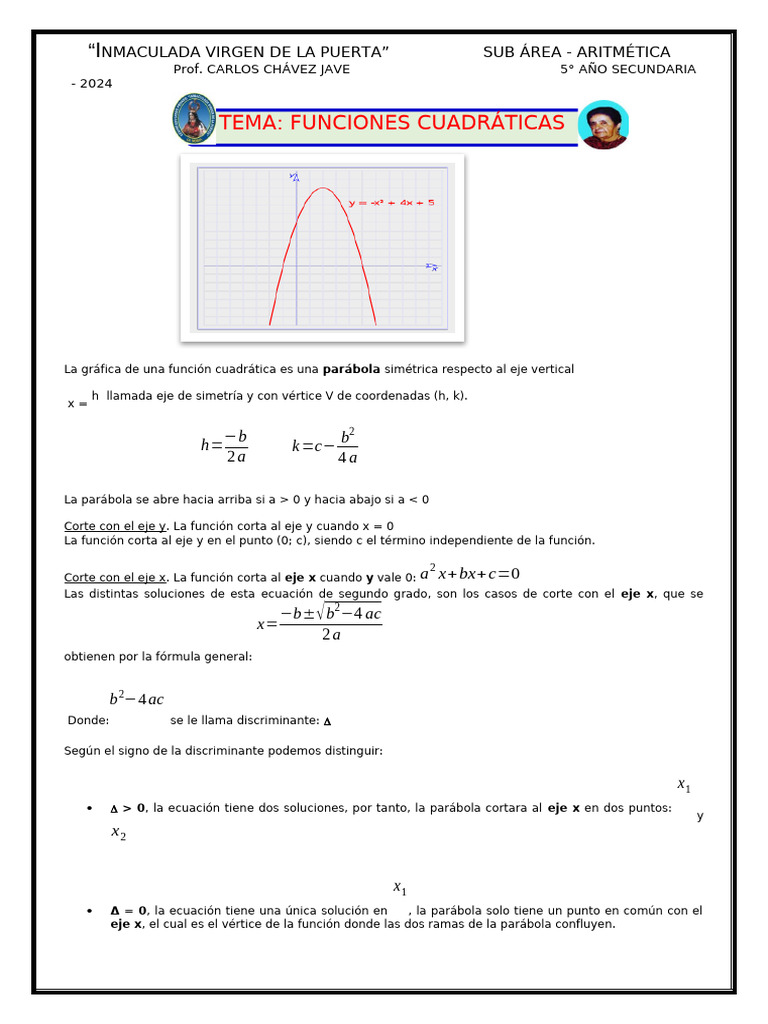 TEMA: FUNCIONES CUADRÁTICAS