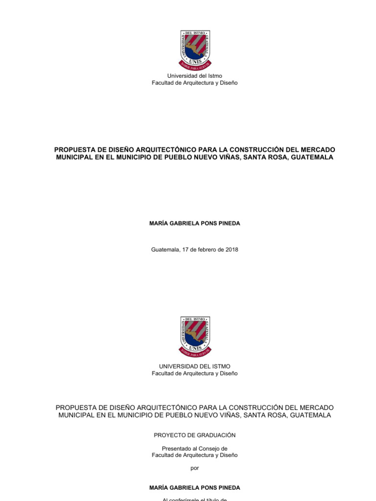 AGUIRRE, A. “Mercado Municipal de Santa Catarina Pinula, Departamento de Guatemala”. Universidad Rafael