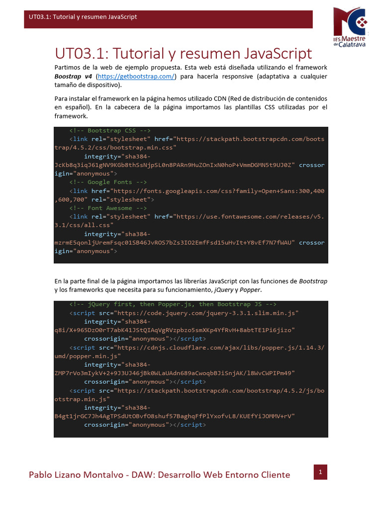 en español). En la cabecera de la página importamos las plantillas CSS utilizadas por el