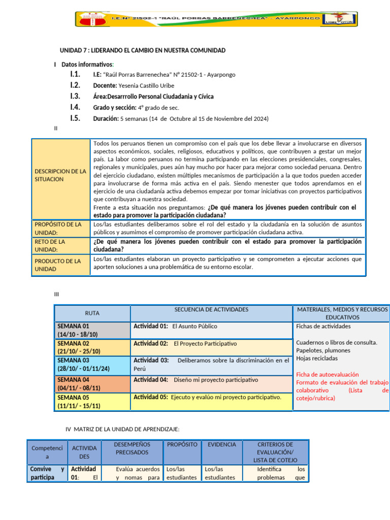 UNIDAD 7 : LIDERANDO EL CAMBIO EN NUESTRA COMUNIDAD