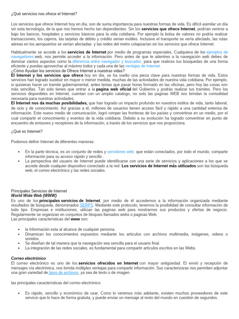 accede desde cualquier dispositivo conectado a la red. Los servicios de Internet más utilizados son las búsqueda