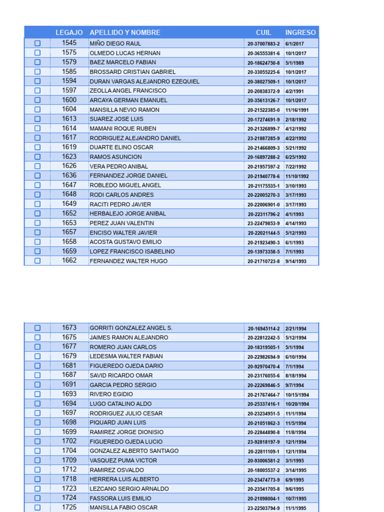 LEGAJO APELLIDO Y NOMBRE CUIL INGRESO