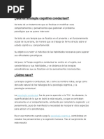 QUE ES LA TERAPIA COGNITIVO CONDUCTUAL TCC