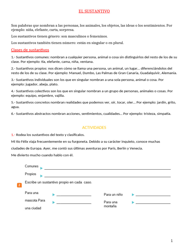 1.- Rodea los sustantivos del texto y clasifícalos.
