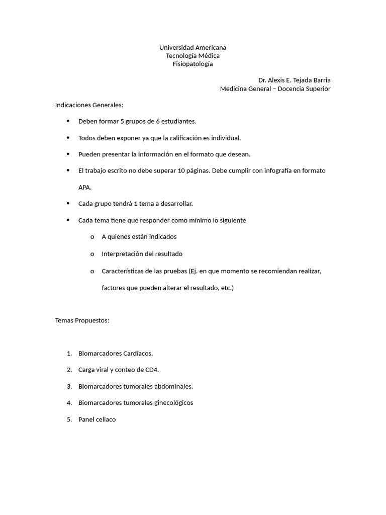 El trabajo escrito no debe superar 10 páginas. Debe cumplir con infografía en formato