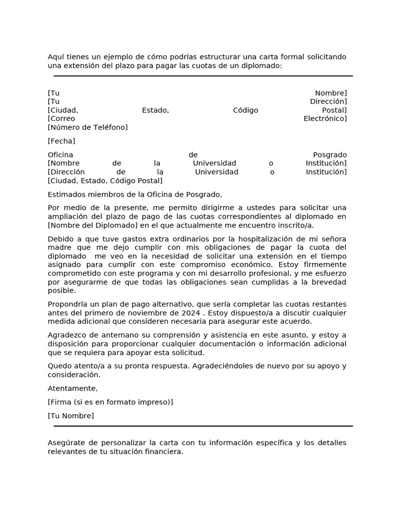 Asegúrate de personalizar la carta con tu información específica y los detalles
