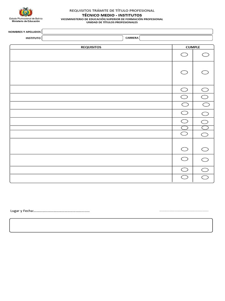 la institución y de la carrera correspondiente, emitida por el Ministerio de Educación. (en el SI NO