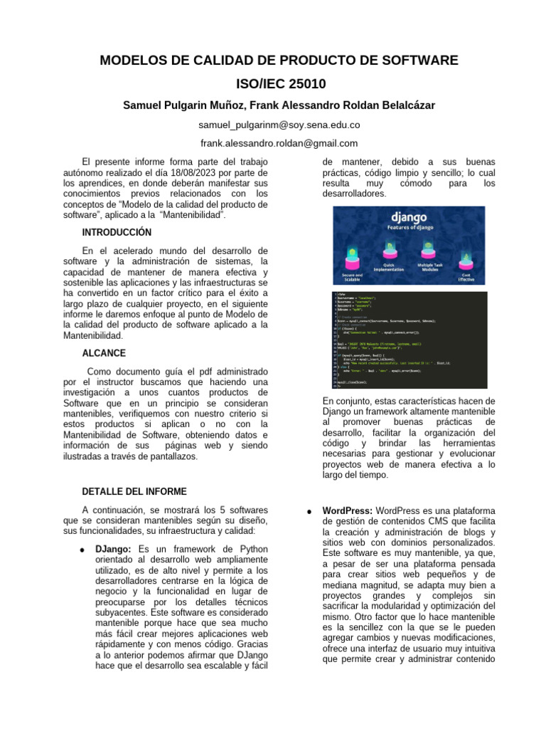 ● DJango: Es un framework de Python Este software es muy mantenible, ya que,