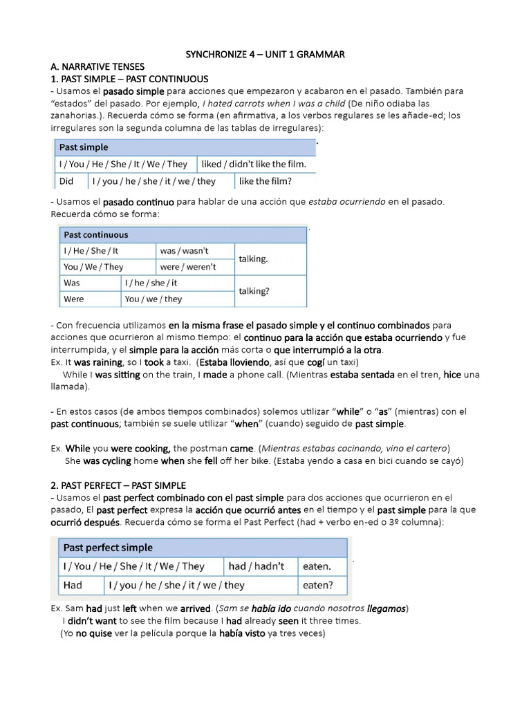 SYNCHRONIZE 4 – UNIT 1 GRAMMAR