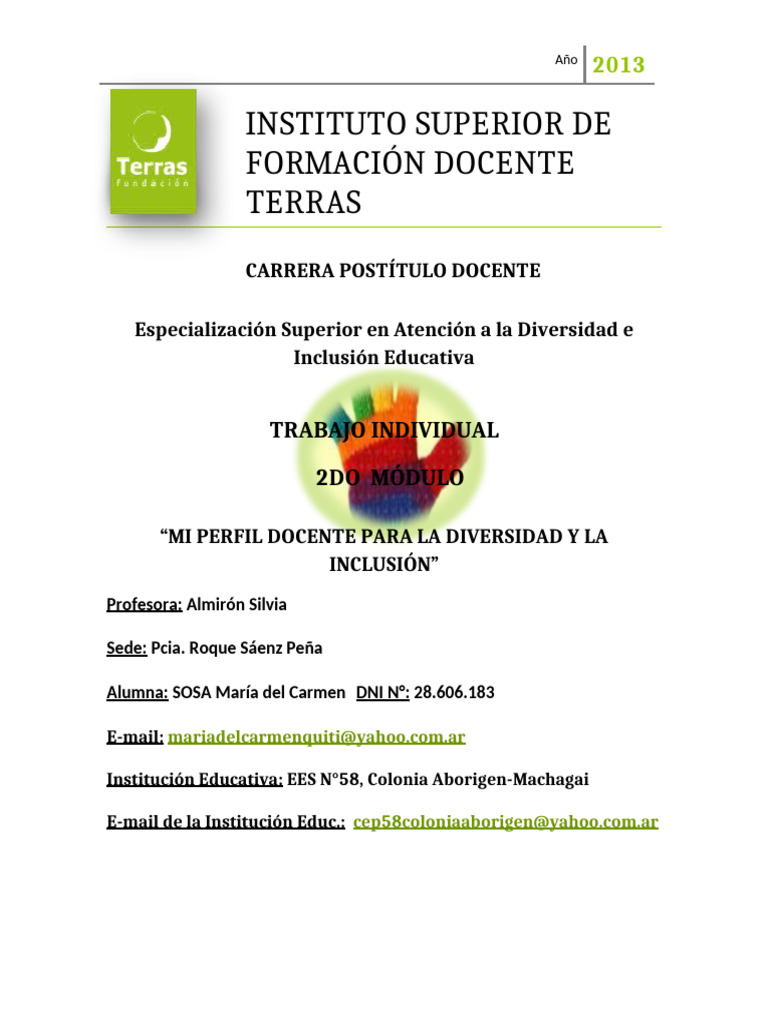 Trabajo Individual: “Mi perfil docente para la diversidad y la