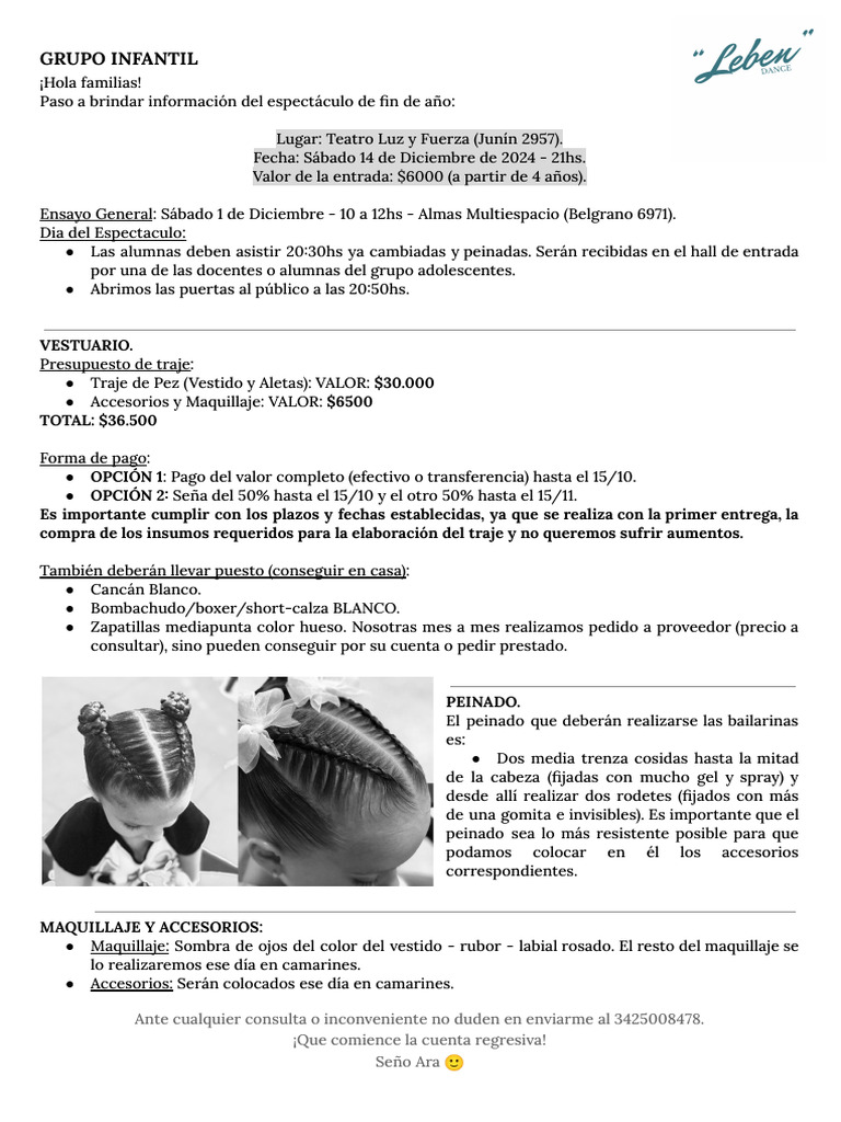 Paso a brindar información del espectáculo de fin de año: