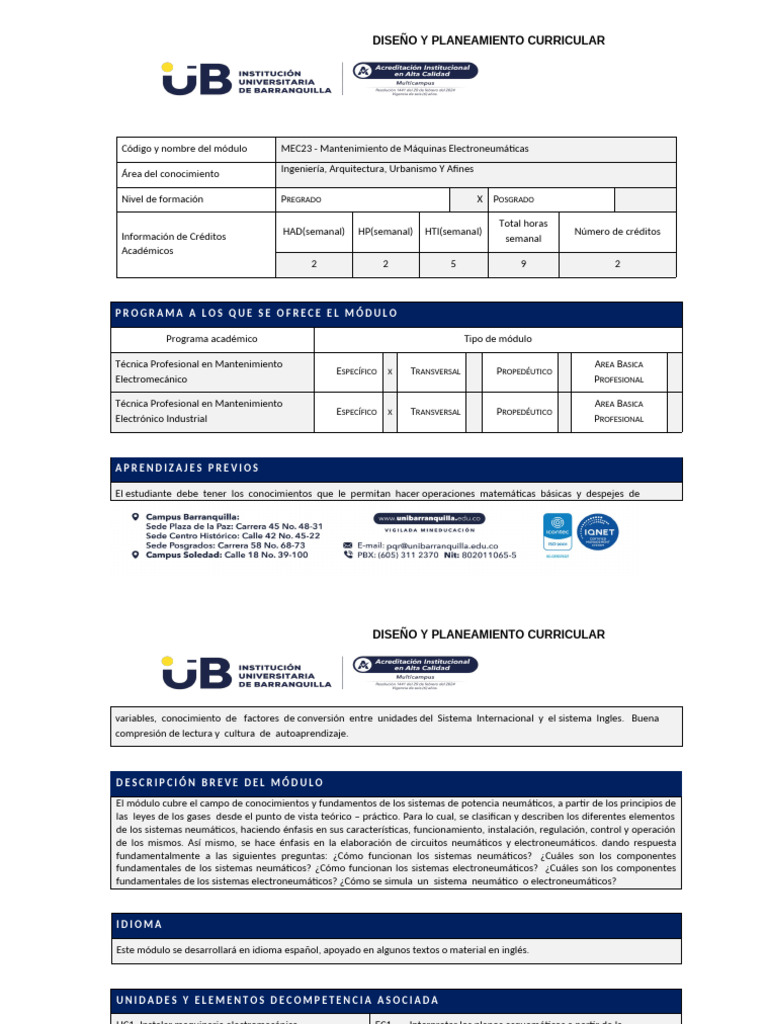 Código y nombre del módulo MEC23 - Mantenimiento de Máquinas Electroneumáticas