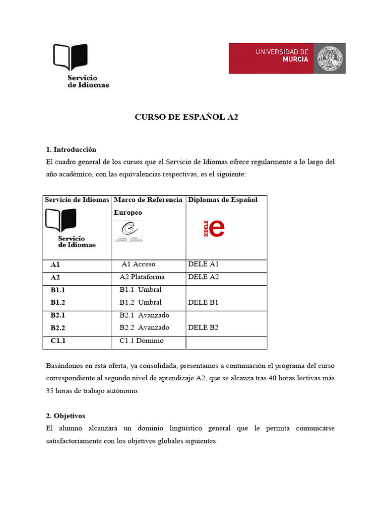 CURSO DE ESPAÑOL A2