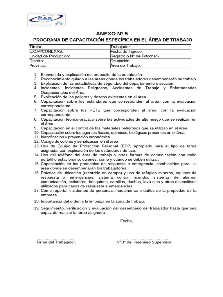 PROGRAMA DE CAPACITACIÓN ESPECÍFICA EN EL ÁREA DE TRABAJO