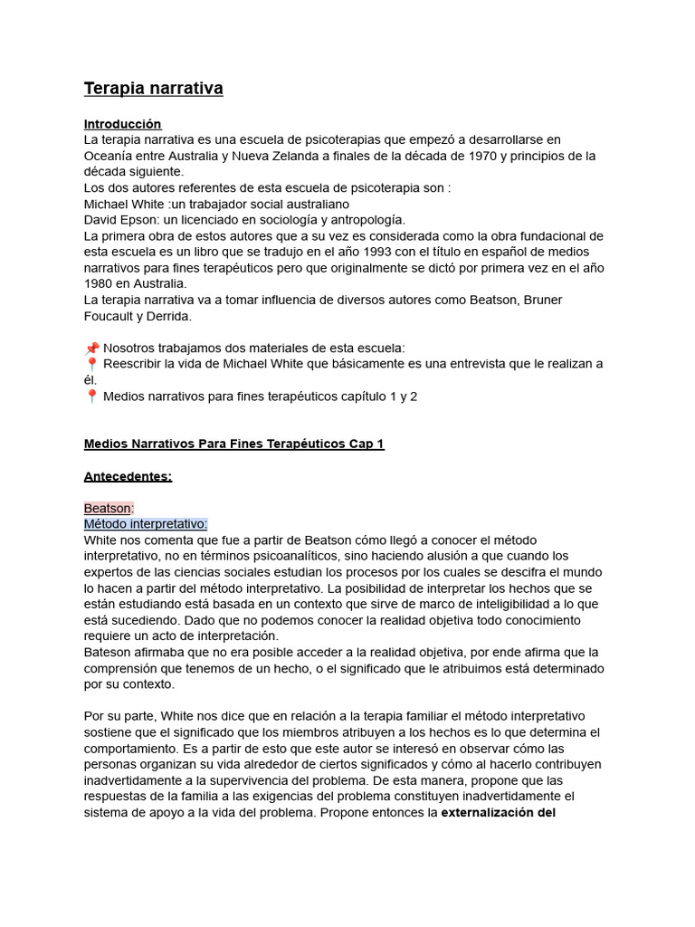 📍 Medios narrativos para fines terapéuticos capítulo 1 y 2