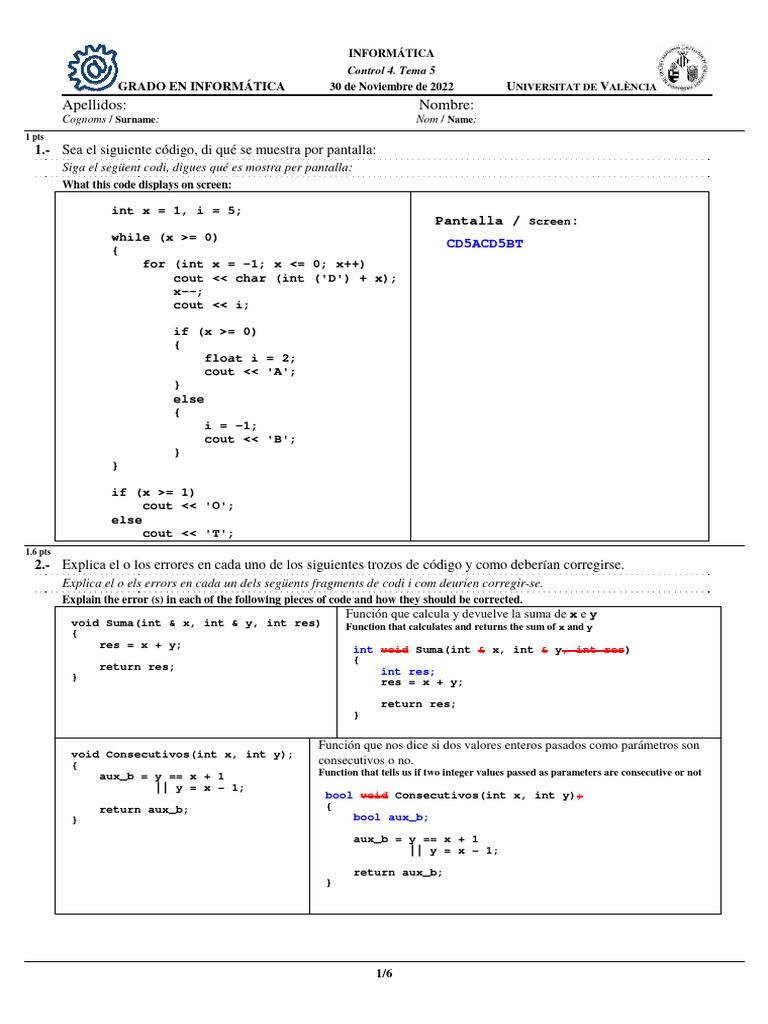 Explica el o els errors en cada un dels següents fragments de codi i com deurien corregir-se.