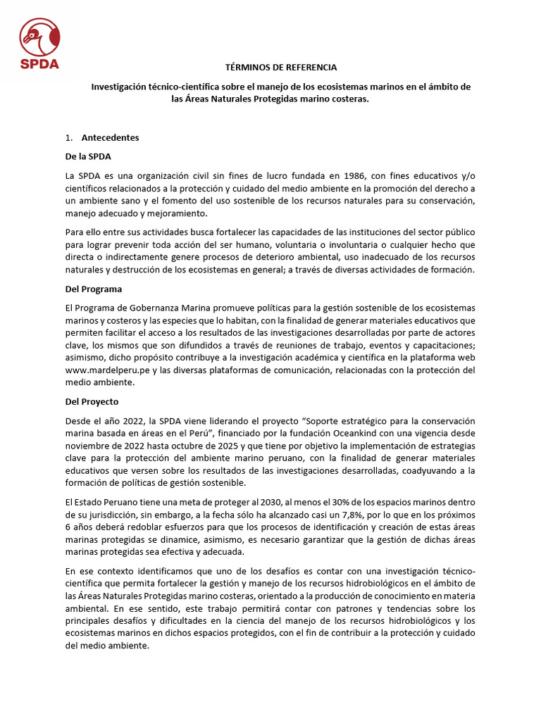 contrataciones@spda.org.pe; debiendo colocar el siguiente Asunto: Análisis técnico científico del