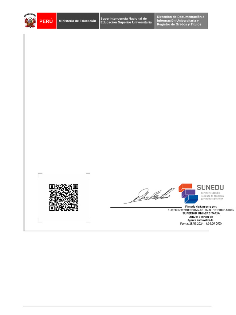 documento se encuentra inscrita en el Registro Nacional de Grados y Títulos administrada por la Sunedu.
