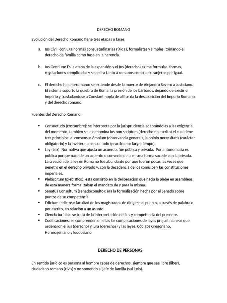 Evolución del Derecho Romano tiene tres etapas o fases: