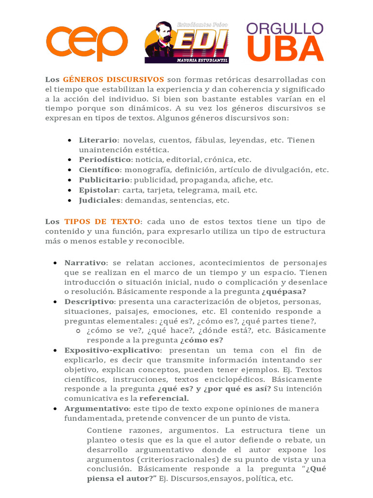 Los TIPOS DE TEXTO: cada uno de estos textos tiene un tipo de