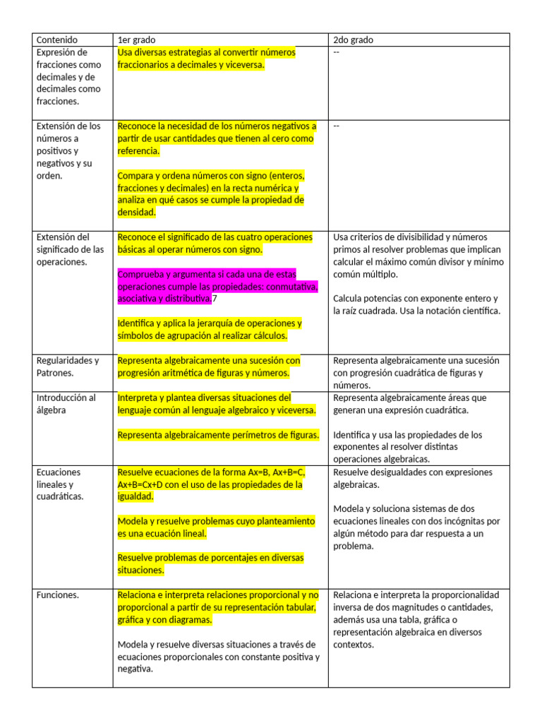 Contenido 1er grado 2do grado