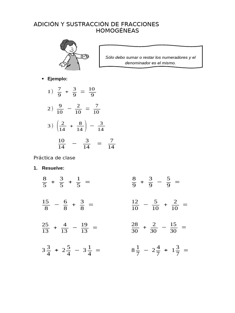 7. Escribe la fracción que resulta al sumar o restar las fracciones de cada