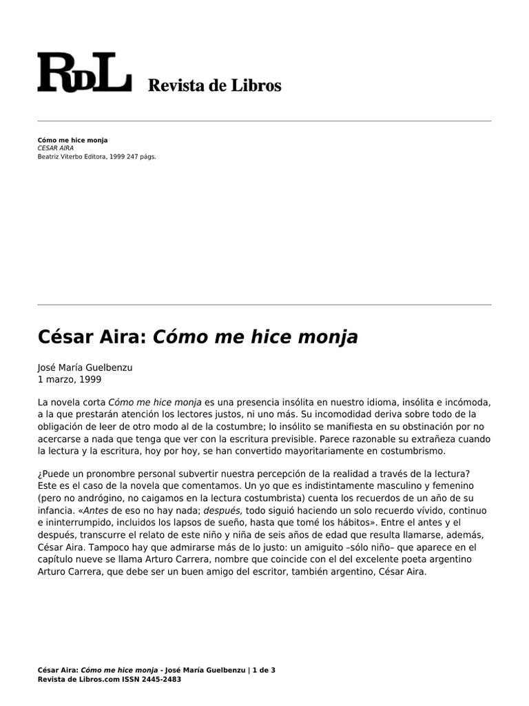 César Aira: Cómo me hice monja - José María Guelbenzu | 1 de 3