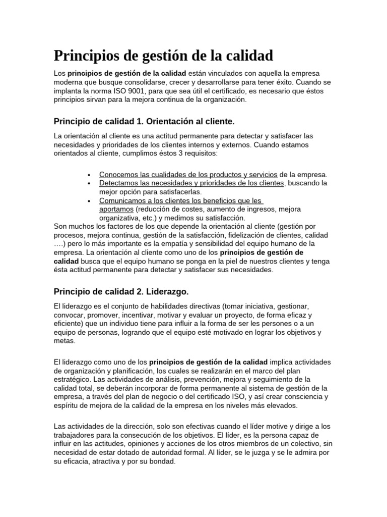 Los principios de gestión de la calidad están vinculados con aquella la empresa