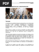 extensión, denominamos restauración al conjunto de establecimientos que sirven comidas y bebidas a cambio