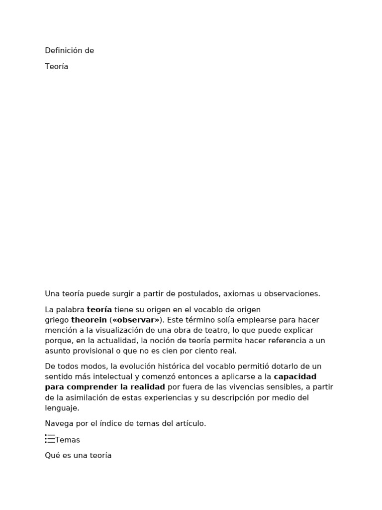Una teoría puede surgir a partir de postulados, axiomas u observaciones.