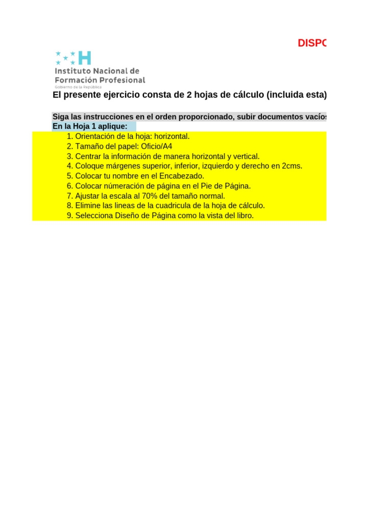 El presente ejercicio consta de 2 hojas de cálculo (incluida esta), lea cuidadosam