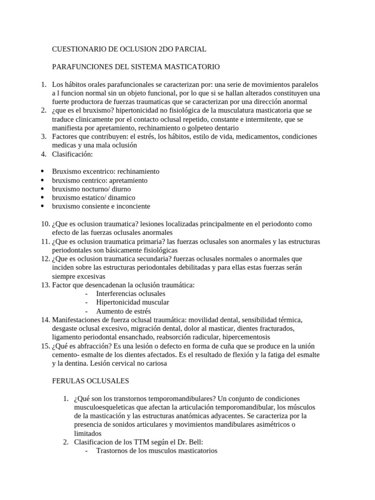 CUESTIONARIO DE OCLUSION 2DO PARCIAL