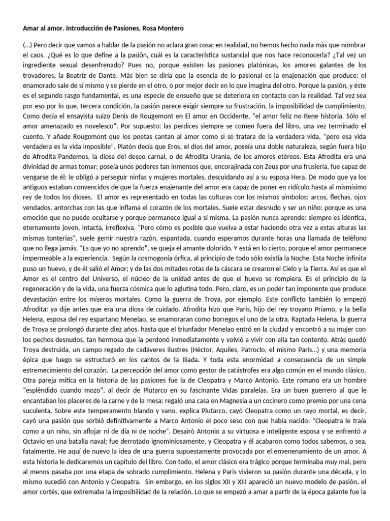 Montero, Rosa. “Amar al amor” en Pasiones. Disponible en [Link]