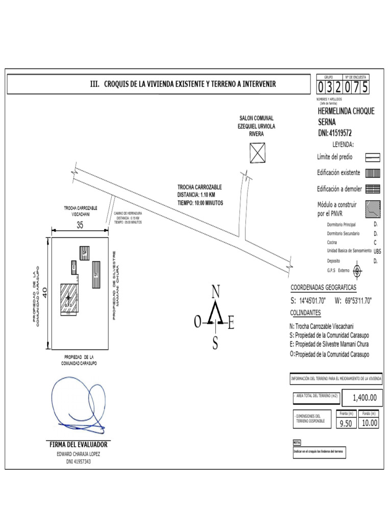 III. CROQUIS DE LA VIVIENDA EXISTENTE Y TERRENO A INTERVENIR