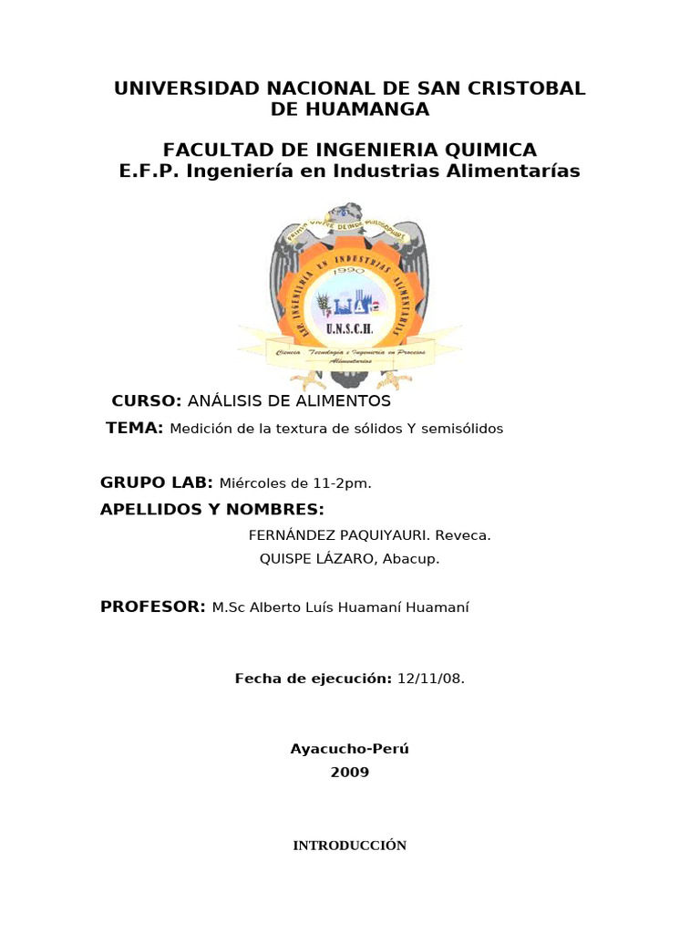 TEMA: Medición de la textura de sólidos Y semisólidos