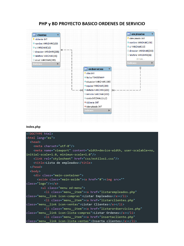 PHP y BD PROYECTO BASICO ORDENES DE SERVICIO