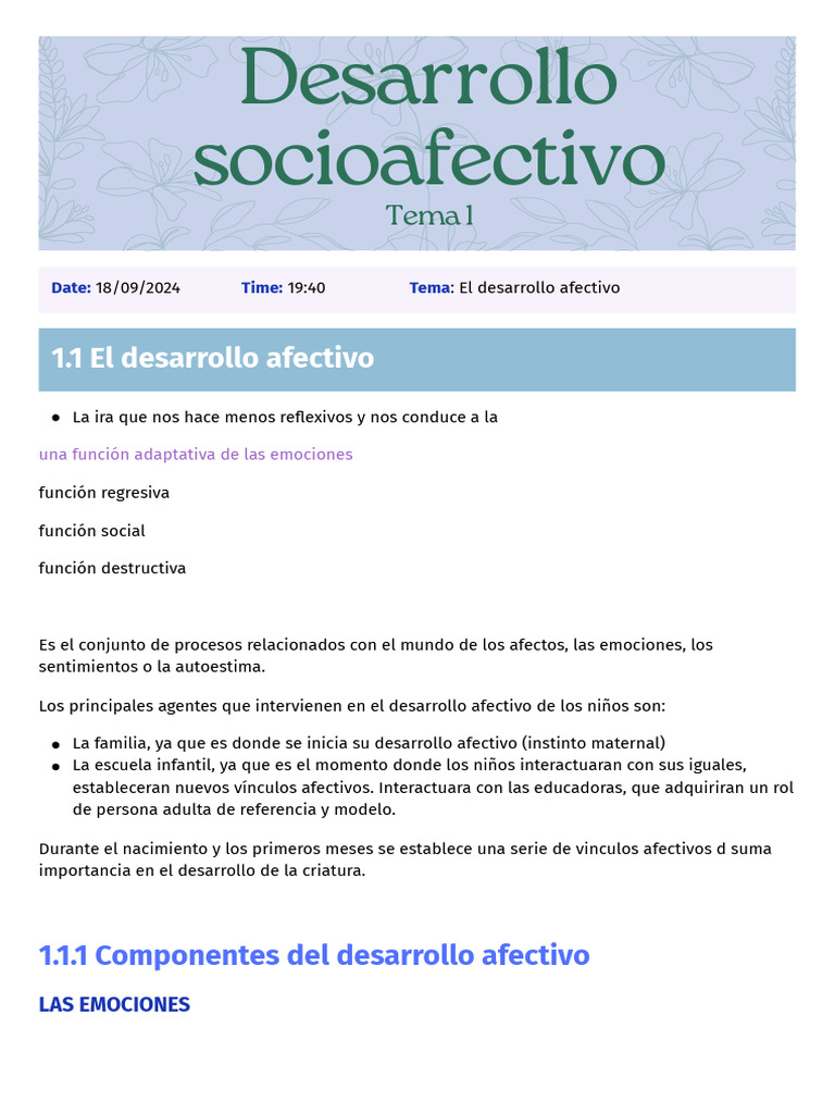 Date: 18/09/2024 Time: 19:40 Tema: El desarrollo afectivo