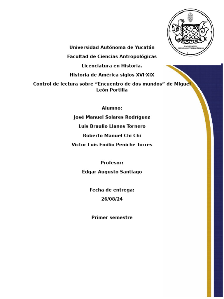 Control de lectura sobre “Encuentro de dos mundos” de Miguel