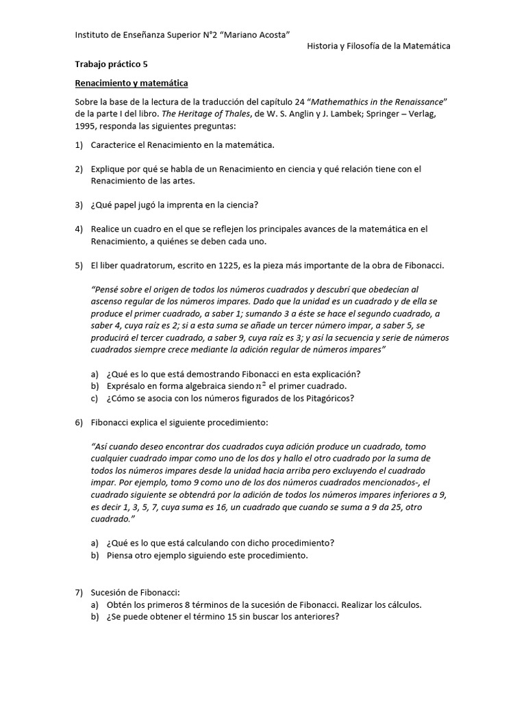 de la parte I del libro. The Heritage of Thales, de W. S. Anglin y J. Lambek; Springer – Verlag,