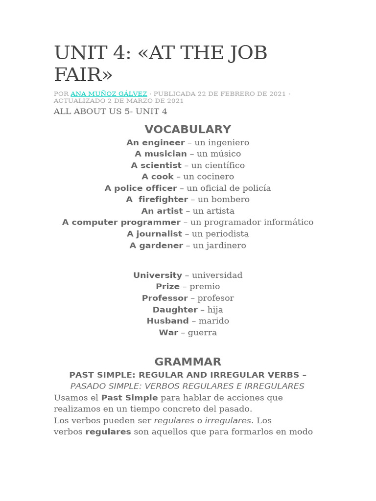 UNIT 4: «AT THE JOB