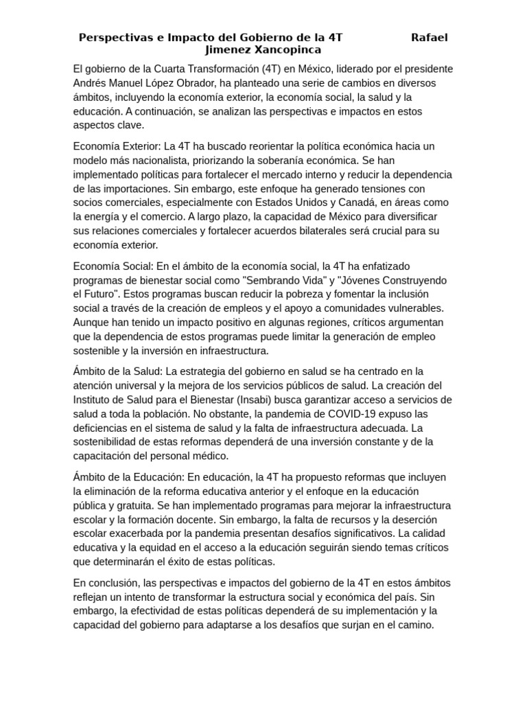 Perspectivas e Impacto del Gobierno de la 4T Rafael