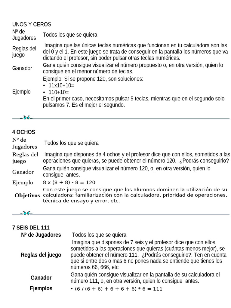 Reglas del Imagina que dispones de 4 ochos y el profesor dice que con ellos, sometidos a las
