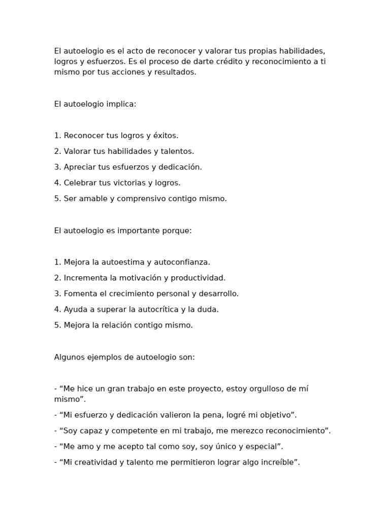 Como puedo desarrollar el auto elogio