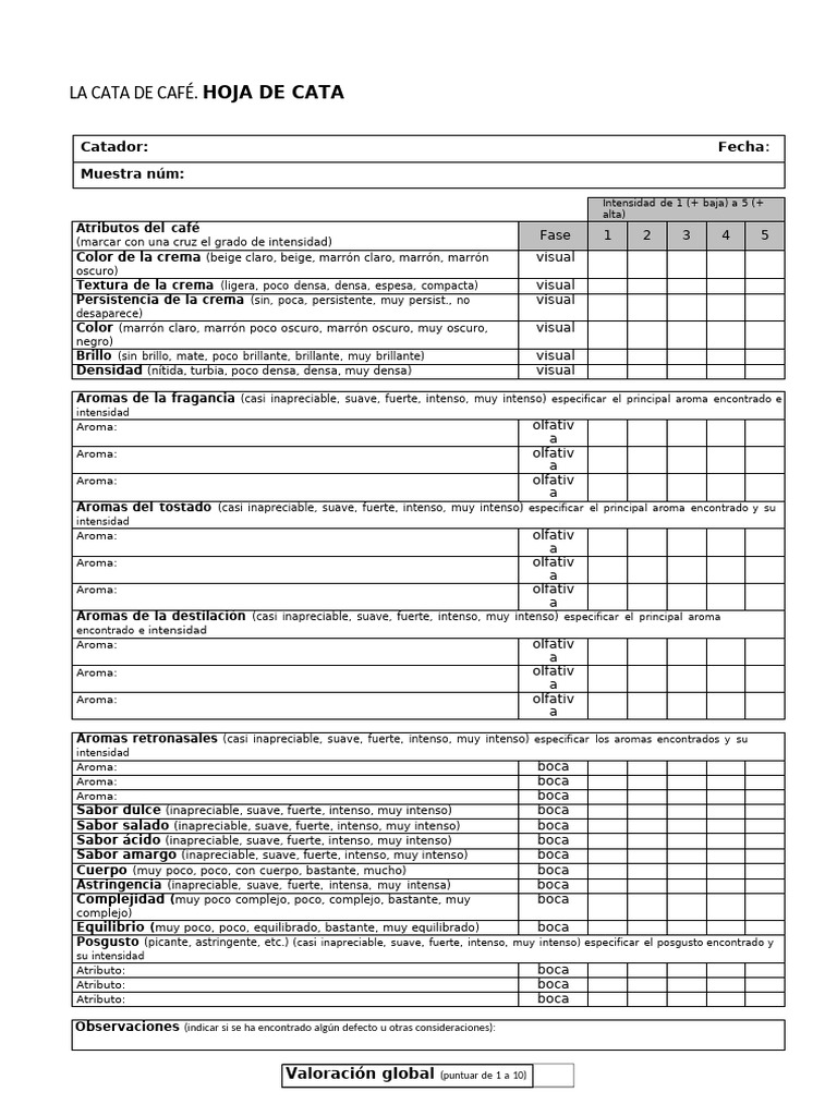 Aromas del tostado (casi inapreciable, suave, fuerte, intenso, muy intenso) especificar el principal aroma encontrado y su