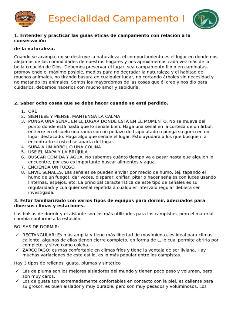 1. Entender y practicar las guías éticas de campamento con relación a la
