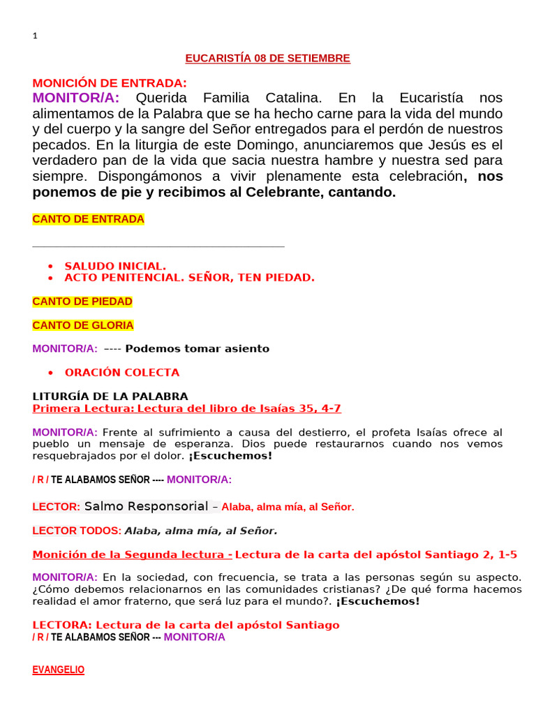 MONITOR/A: Querida Familia Catalina. En la Eucaristía nos