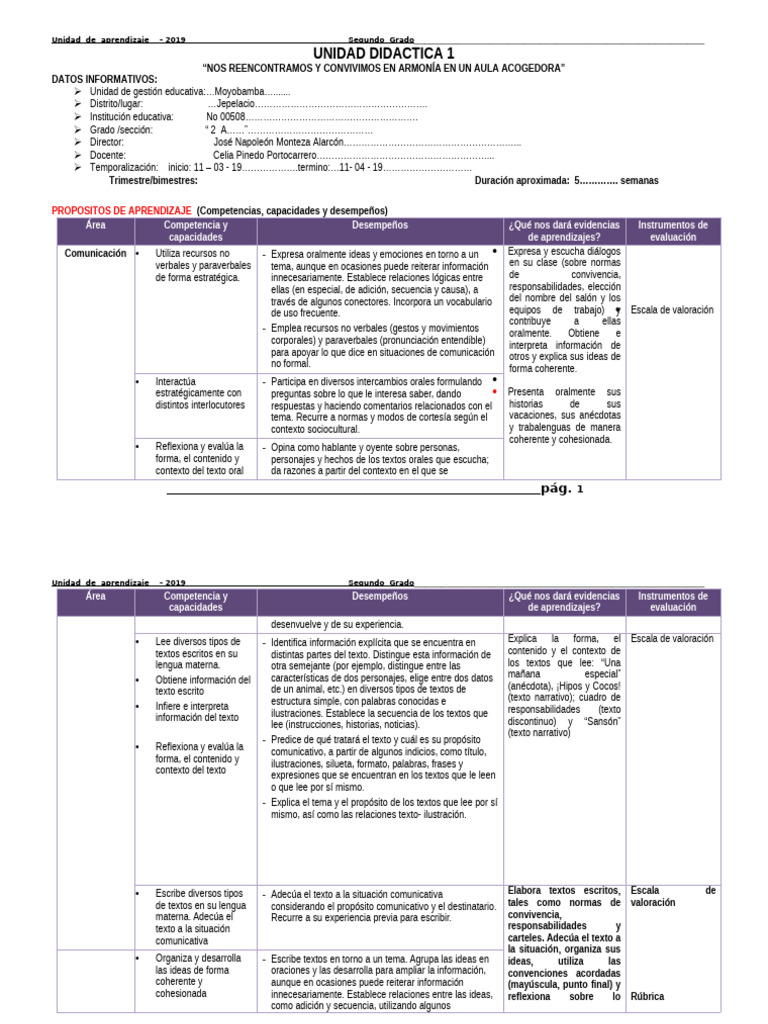 Unidad de aprendizaje – 2019 Segundo Grado_____________________________________________________