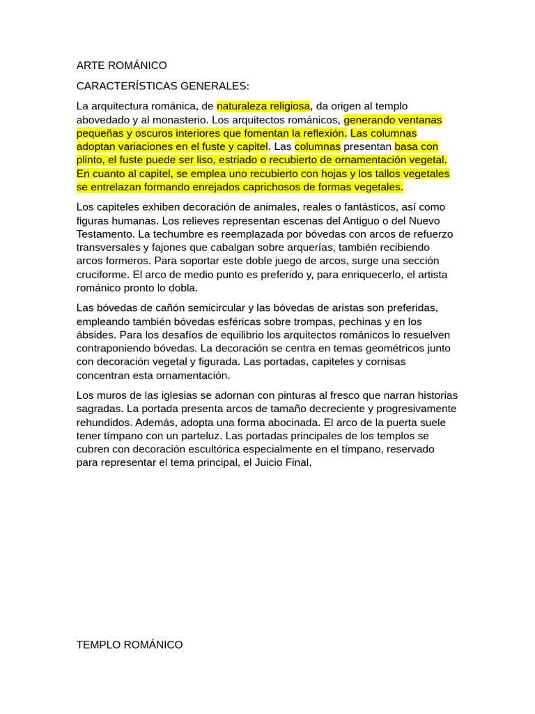 La arquitectura románica, de naturaleza religiosa, da origen al templo