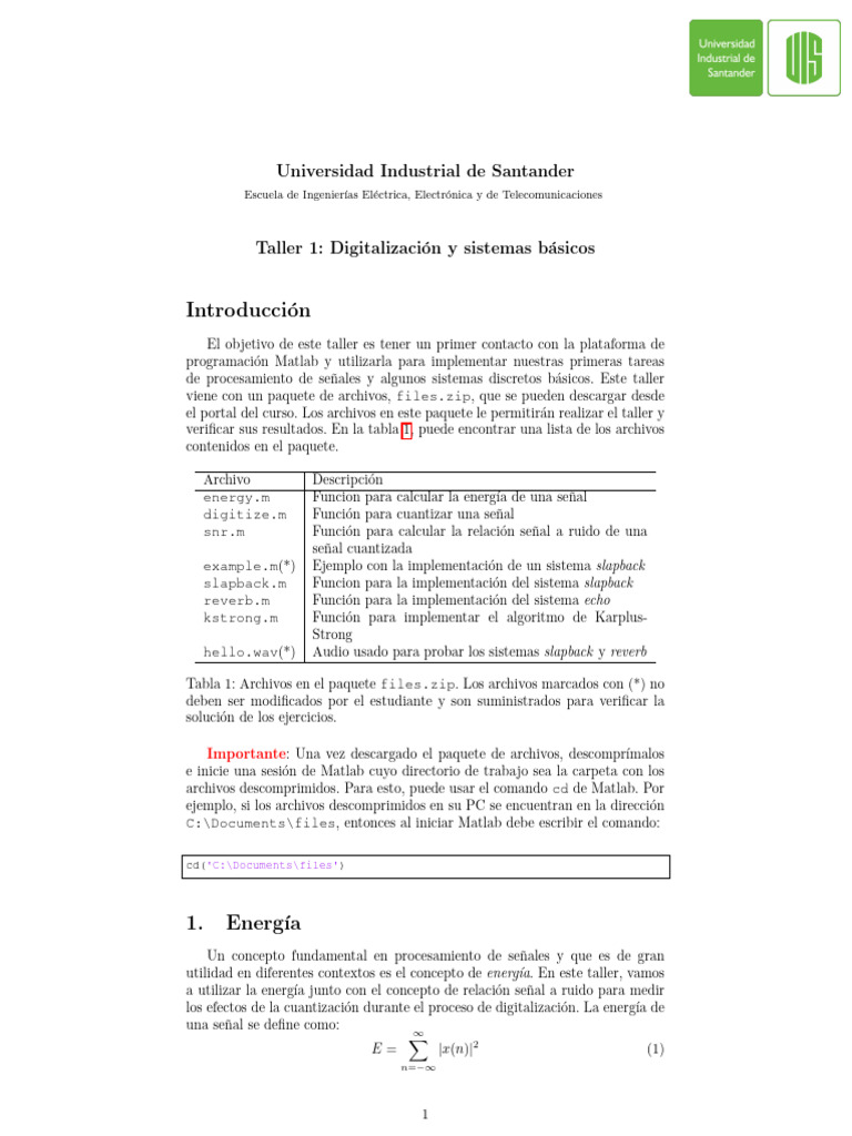 de procesamiento de señales y algunos sistemas discretos básicos. Este taller