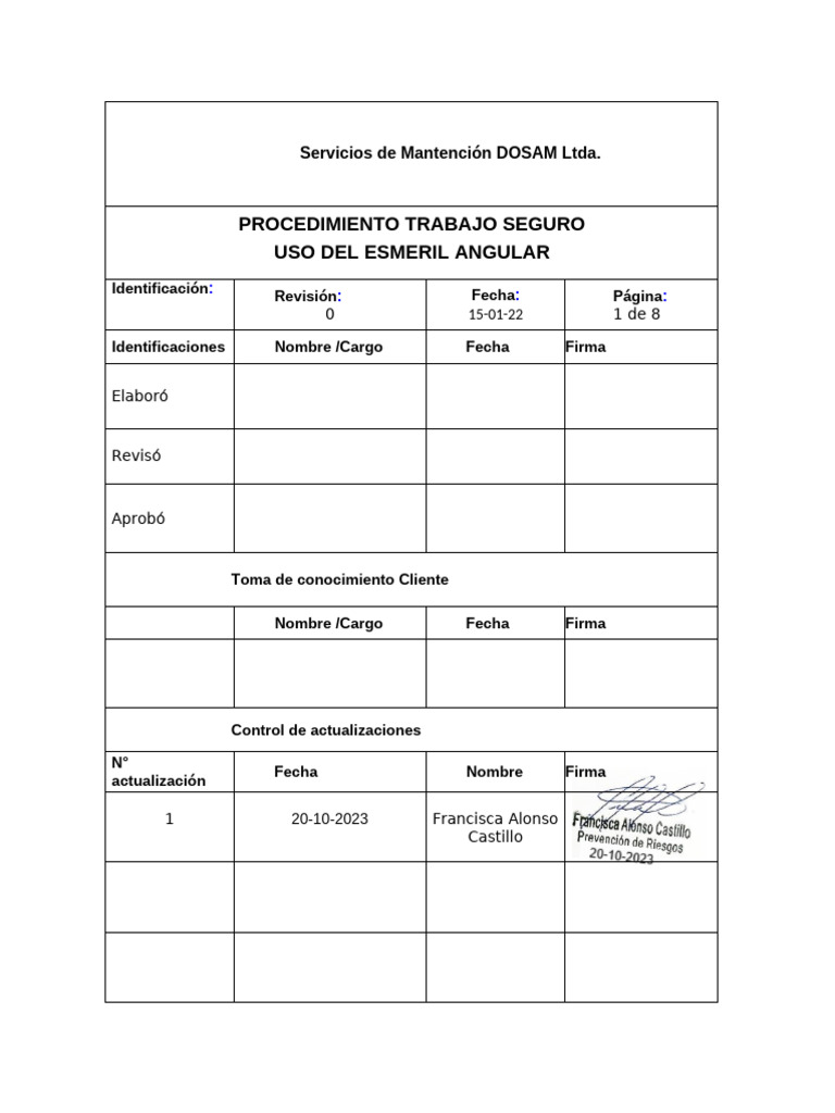 - Comunicar al personal que trabajará con esmeril angular acerca